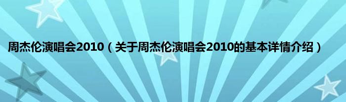 本文关于周杰伦演唱会2010的基本详情介绍就讲解完毕,希望对大家有所帮助。
