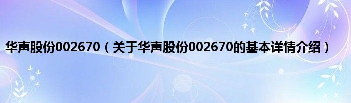 本文关于华声股份002670的基本详情介绍就讲解完毕,希望对大家有所帮助。
