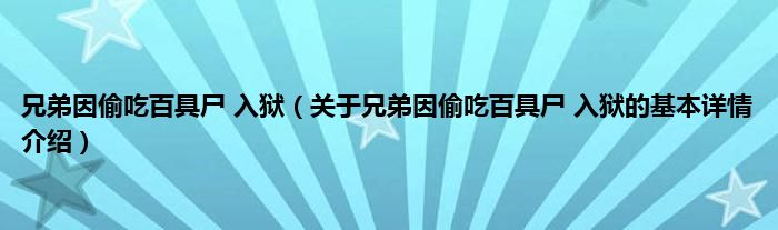 本文关于兄弟因偷吃百具尸 入狱的基本详情介绍就讲解完毕,希望对大家有所帮助。