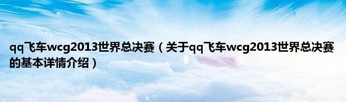 本文关于qq飞车wcg2013世界总决赛的基本详情介绍就讲解完毕,希望对大家有所帮助。