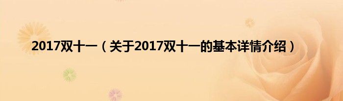 本文关于2017双十一的基本详情介绍就讲解完毕,希望对大家有所帮助。