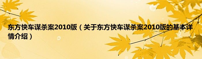 本文关于东方快车谋杀案2010版的基本详情介绍就讲解完毕,希望对大家有所帮助。
