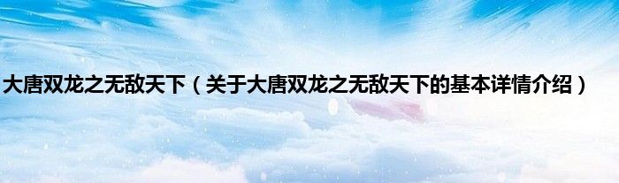 本文关于大唐双龙之无敌天下的基本详情介绍就讲解完毕,希望对大家有所帮助。