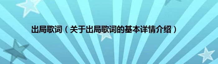 本文关于出局歌词的基本详情介绍就讲解完毕,希望对大家有所帮助。