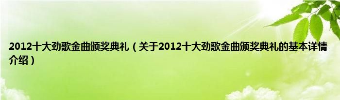 本文关于2012十大劲歌金曲颁奖典礼的基本详情介绍就讲解完毕,希望对大家有所帮助。