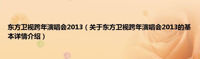 本文关于东方卫视跨年演唱会2013的基本详情介绍就讲解完毕,希望对大家有所帮助。
