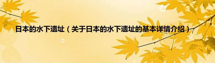 本文关于日本的水下遗址的基本详情介绍就讲解完毕,希望对大家有所帮助。