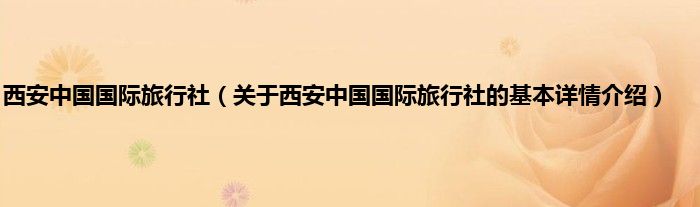 本文关于西安中国国际旅行社的基本详情介绍就讲解完毕,希望对大家有所帮助。