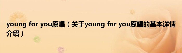 本文关于young for you原唱的基本详情介绍就讲解完毕,希望对大家有所帮助。