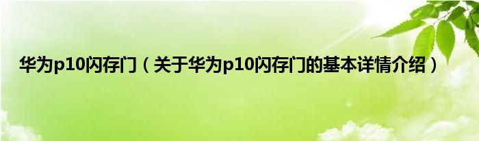 本文关于华为p10闪存门的基本详情介绍就讲解完毕,希望对大家有所帮助。