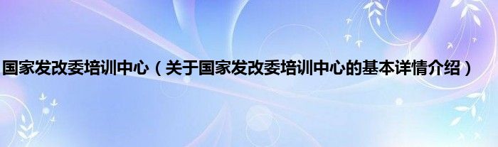 本文关于国家发改委培训中心的基本详情介绍就讲解完毕,希望对大家有所帮助。