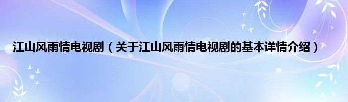 本文关于江山风雨情电视剧的基本详情介绍就讲解完毕,希望对大家有所帮助。