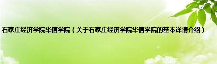 本文关于石家庄经济学院华信学院的基本详情介绍就讲解完毕,希望对大家有所帮助。