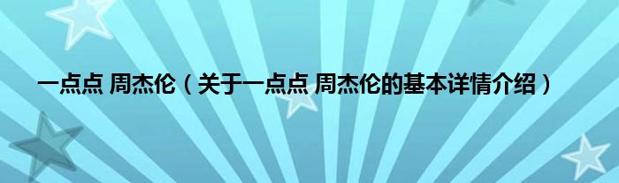 本文关于一点点 周杰伦的基本详情介绍就讲解完毕,希望对大家有所帮助。