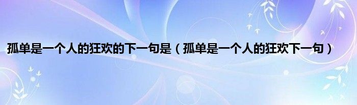 以上就是【孤单是一个人的狂欢的下一句是,孤单是一个人的狂欢下一句】相关内容。