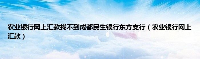 以上就是【农业银行网上汇款找不到成都民生银行东方支行,农业银行网上汇款】相关内容。