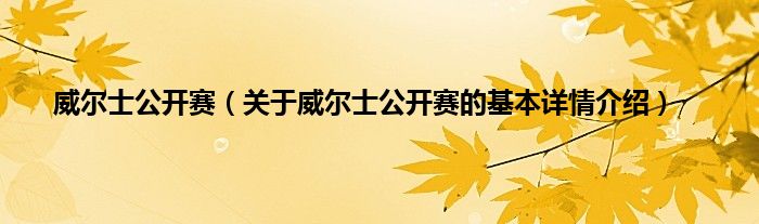 本文关于威尔士公开赛的基本详情介绍就讲解完毕,希望对大家有所帮助。