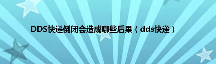 以上就是【DDS快递倒闭会造成哪些后果,dds快递】相关内容。