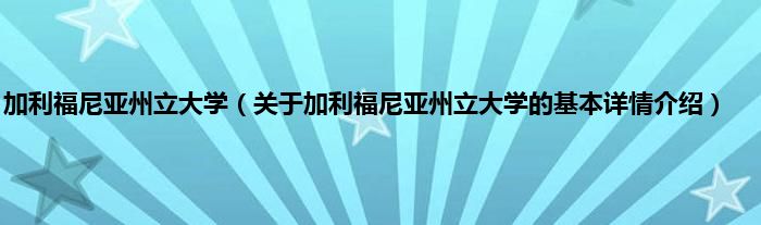 本文关于加利福尼亚州立大学的基本详情介绍就讲解完毕,希望对大家有所帮助。