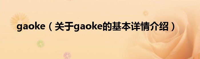 本文关于gaoke的基本详情介绍就讲解完毕,希望对大家有所帮助。