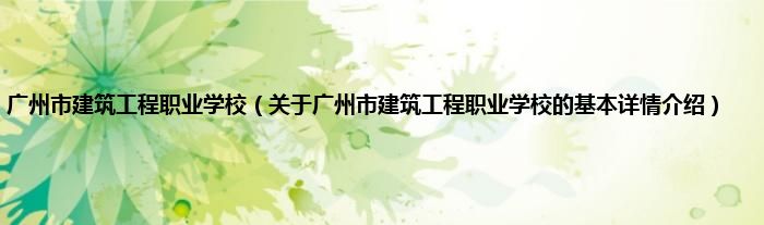 本文关于广州市建筑工程职业学校的基本详情介绍就讲解完毕,希望对大家有所帮助。