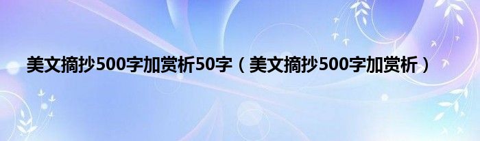 以上就是【美文摘抄500字加赏析50字,美文摘抄500字加赏析】相关内容。