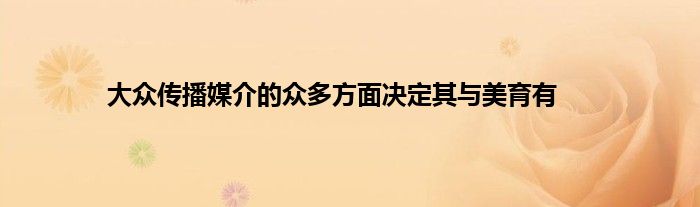 大家好,小问来为大家解答以上问题。大众传播媒介的众多方面决定其与美育有这个很多人还不知道,现在让我们一起来看看吧!