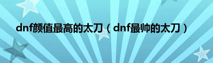以上就是【dnf颜值最高的太刀,dnf最帅的太刀】相关内容。