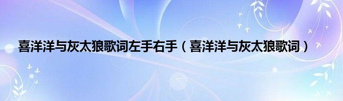 大家好,小问来为大家解答以上问题。喜洋洋与灰太狼歌词左手右手,喜洋洋与灰太狼歌词这个很多人还不知道,现在让我们一起来看看吧!