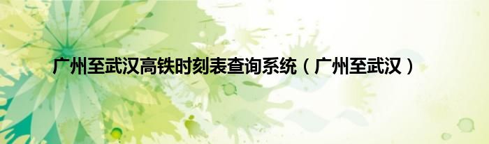 以上就是【广州至武汉高铁时刻表查询系统,广州至武汉】相关内容。