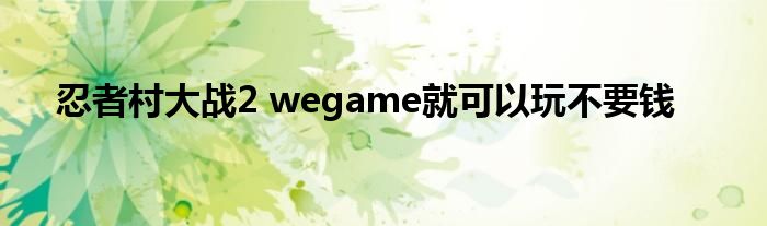 大家好,小问来为大家解答以上问题。忍者村大战2 wegame就可以玩不要钱这个很多人还不知道,现在让我们一起来看看吧!