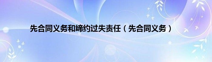 大家好,小问来为大家解答以上问题。先合同义务和缔约过失责任,先合同义务这个很多人还不知道,现在让我们一起来看看吧!