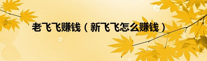 以上就是【老飞飞赚钱,新飞飞怎么赚钱】相关内容。