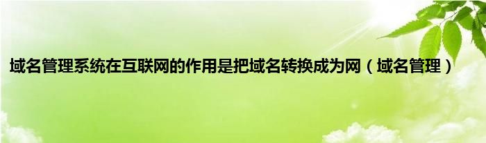 大家好,小问来为大家解答以上问题。域名管理系统在互联网的作用是把域名转换成为网,域名管理这个很多人还不知道,现在让我们一起来看看吧!