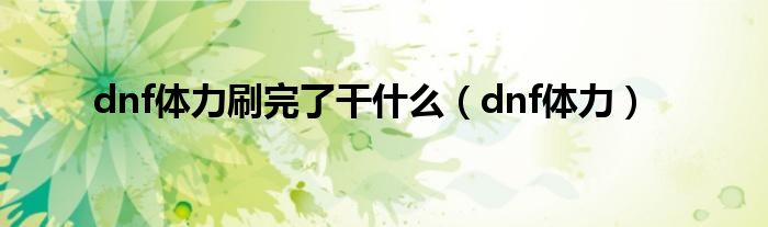 以上就是【dnf体力刷完了干什么,dnf体力】相关内容。