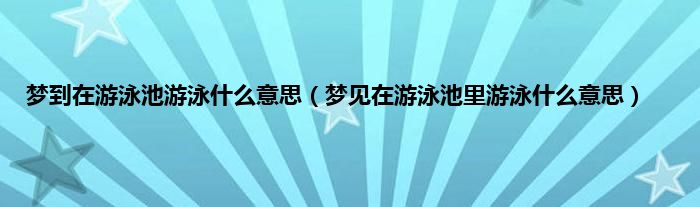 大家好,综合小编来为大家讲解下。梦到在游泳池游泳什么意思,梦见在游泳池里游泳什么意思这个很多人还不知道,现在让我们一起来看看吧!
