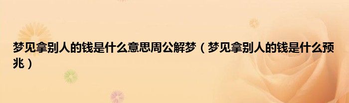 本文梦见拿别人的钱是什么意思周公解梦,梦见拿别人的钱是什么预兆到此分享完毕,希望对大家有所帮助。