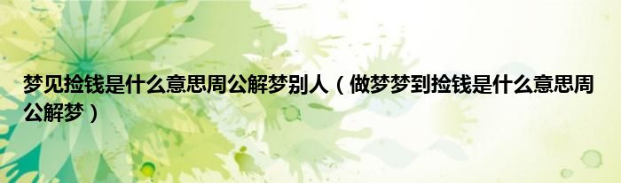 大家好,综合小编来为大家讲解下。梦见捡钱是什么意思周公解梦别人,做梦梦到捡钱是什么意思周公解梦这个很多人还不知道,现在让我们一起来看看吧!