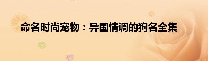 大家好,综合小编来为大家讲解下。命名时尚宠物:异国情调的狗名全集这个很多人还不知道,现在让我们一起来看看吧!