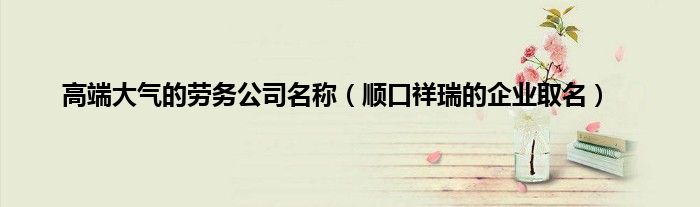 大家好,综合小编来为大家讲解下。高端大气的劳务公司名称,顺口祥瑞的企业取名这个很多人还不知道,现在让我们一起来看看吧!