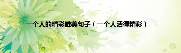 大家好,小问来为大家解答以上问题。一个人的精彩唯美句子,一个人活得精彩这个很多人还不知道,现在让我们一起来看看吧!