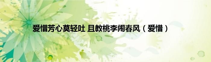 以上就是【爱惜芳心莫轻吐 且教桃李闹春风,爱惜】相关内容。