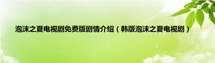 以上就是【泡沫之夏电视剧免费版剧情介绍,韩版泡沫之夏电视剧】相关内容。