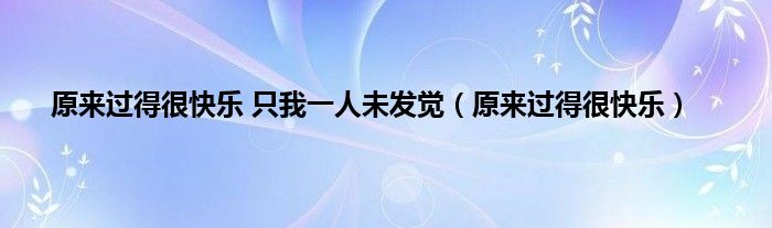 大家好,小问来为大家解答以上问题。原来过得很快乐 只我一人未发觉,原来过得很快乐这个很多人还不知道,现在让我们一起来看看吧!