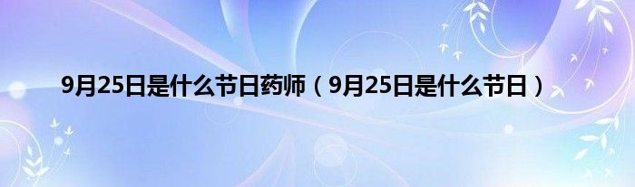 以上就是【9月25日是什么节日药师,9月25日是什么节日】相关内容。