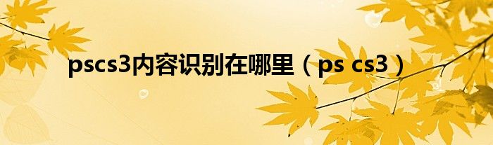 大家好,小问来为大家解答以上问题。pscs3内容识别在哪里,ps cs3这个很多人还不知道,现在让我们一起来看看吧!
