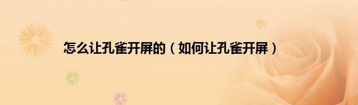 以上就是【怎么让孔雀开屏的,如何让孔雀开屏】相关内容。