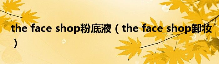 大家好,小问来为大家解答以上问题。the face shop粉底液,the face shop卸妆这个很多人还不知道,现在让我们一起来看看吧!