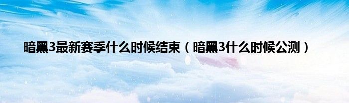 暗黑3最新赛季什么时候结束(暗黑3什么时候公测)