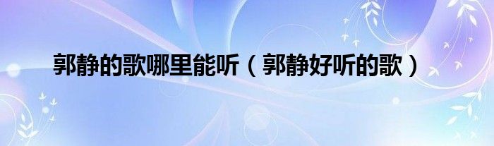 大家好,小问来为大家解答以上问题。郭静的歌哪里能听,郭静好听的歌这个很多人还不知道,现在让我们一起来看看吧!